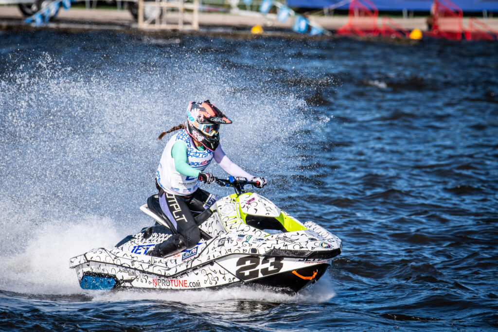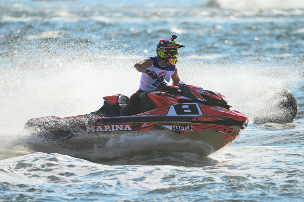 Per l’Italia grande soddisfazione nella Runabout GP4 Ladies e nella Runabout GP2 maschile con ben quattro medaglie conquistate. Trionfo di Arianna Urlo nella Runabout GP4 Ladies (foto podio in apertura): la talentuosa pilota romana del CSR Promotion ASD ha vinto l’oro totalizzando 72 punti e diventando così la campionessa mondiale di categoria per la seconda volta nella sua carriera (la prima sempre a Olbia nel 2022). Secondo posto e argento mondiale per la transalpina Cyrielle Bramm con 60 punti; completa il podio la varesotta Aurora Filiberti (Moto d’Acqua Italia SSD A RL) la quale ha ottenuto il bronzo mondiale dopo una prestazione eccellente che le è valsa 58 punti. Dodicesimo posto l’altra azzurra in gara, Ilaria Vanni, (H2O Racing Team) la quale ha chiuso la gara con 31 punti.